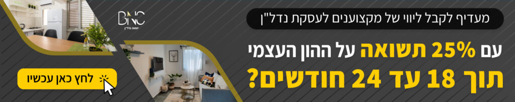 מעדיף לקבל ליווי של מקצוענים לעסקת נדל"ן עם 25% תשואה על ההון העצמי תוך 18-24 חודשים? לחץ כאן עכשיו